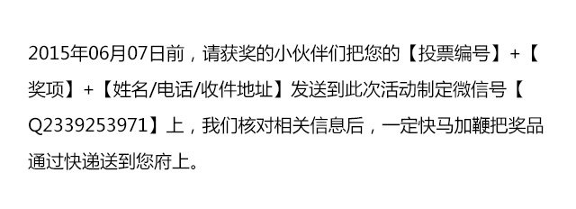 【兌獎規則】:(1)本投票活動結束時間:2015年05月25日;