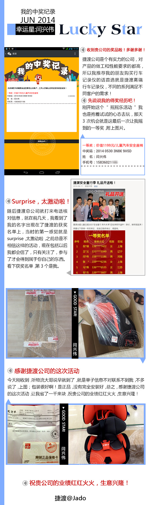 更讓很多人羨慕的是,我們的客戶有中了三次大獎的呢,連續中兩次獎的也大有人在,他們的感觸是捷渡不僅產品好,活動舉辦的也好,活動給他們帶了好運氣…….