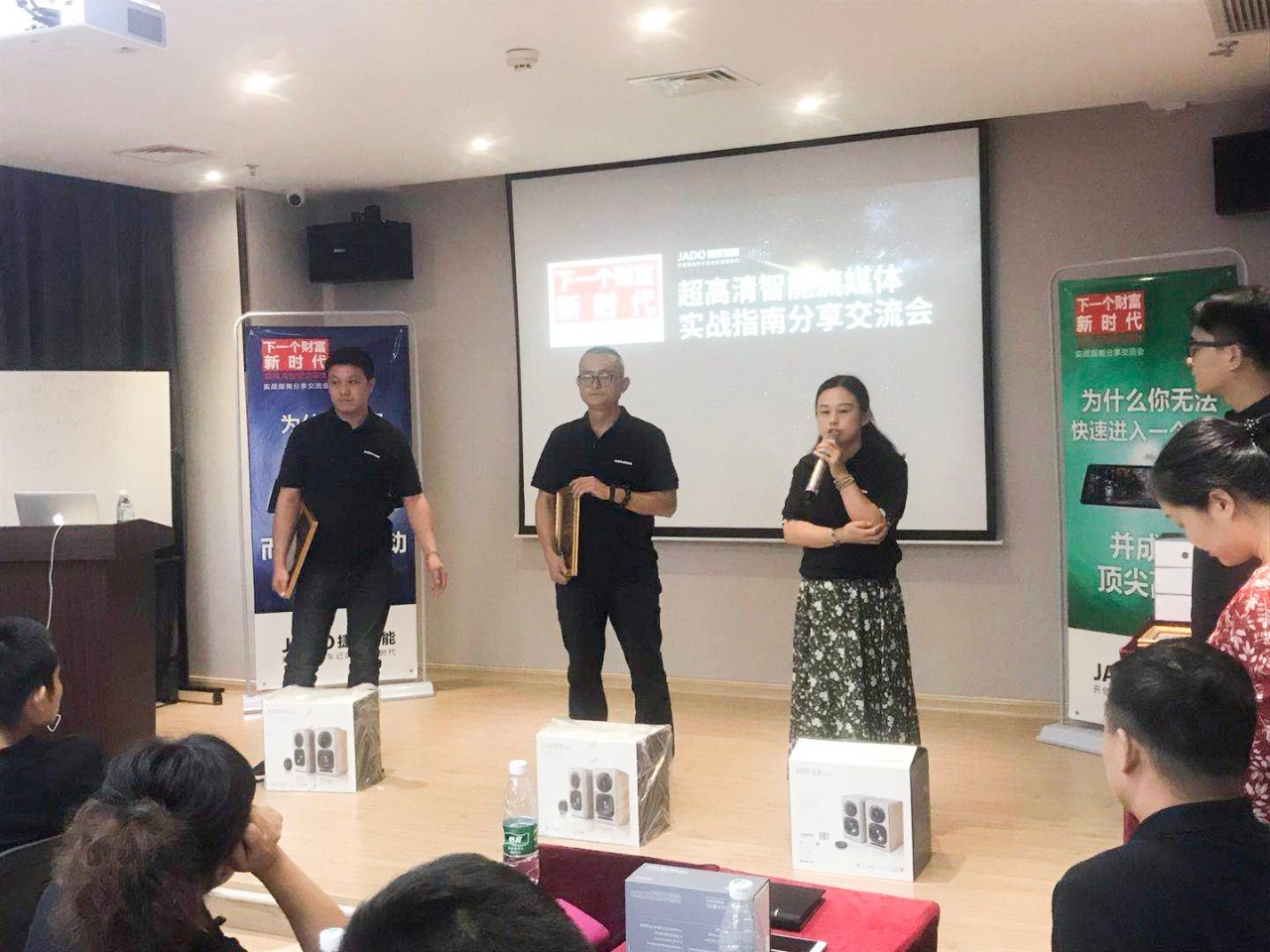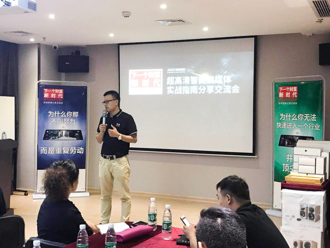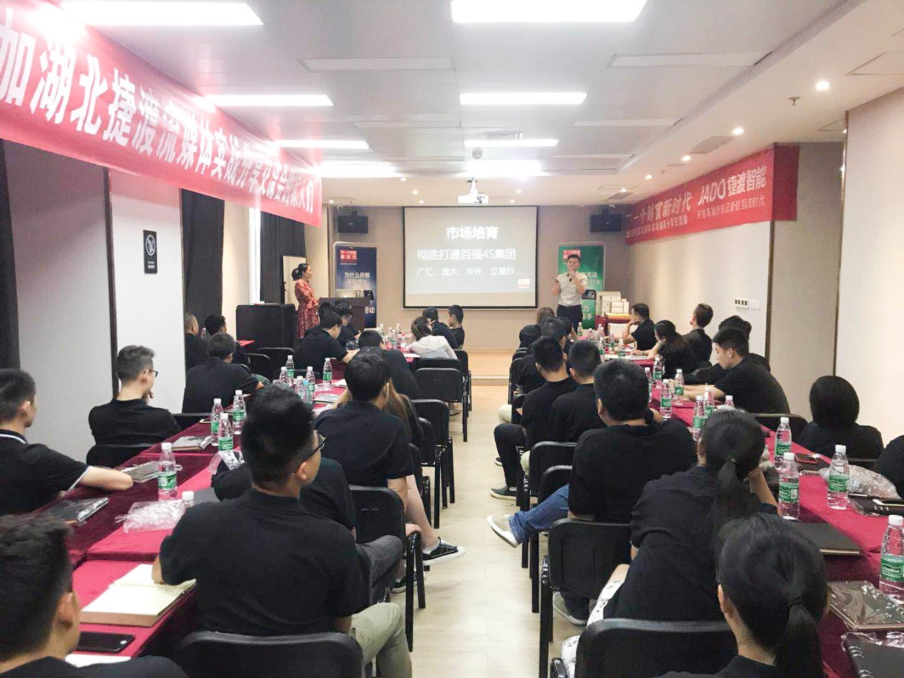 為了抓住時代機遇,實現財富增長。2018年7月15日,JADO捷渡智能(中國)攜手武漢偉鵬汽車影音有限公司,在武漢市硚口區(qū)共同舉行了“VSeries遠界核心店交流培訓會(武漢站)”。來自湖北省的60余家JADO捷渡智能(中國)授權終端店參加了此次會議,一起探討流媒體未來之路和分享成功經驗。